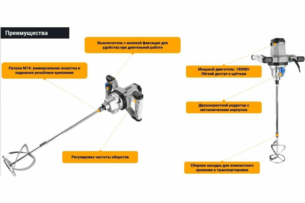 Миксер строительный DEKO DKM1800W, 063-4990, двухскоростной