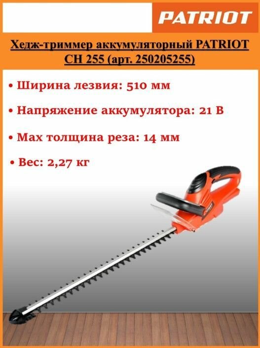 Patriot Хедж-триммер аккумуляторный СН 255 21В Max UES 250205255