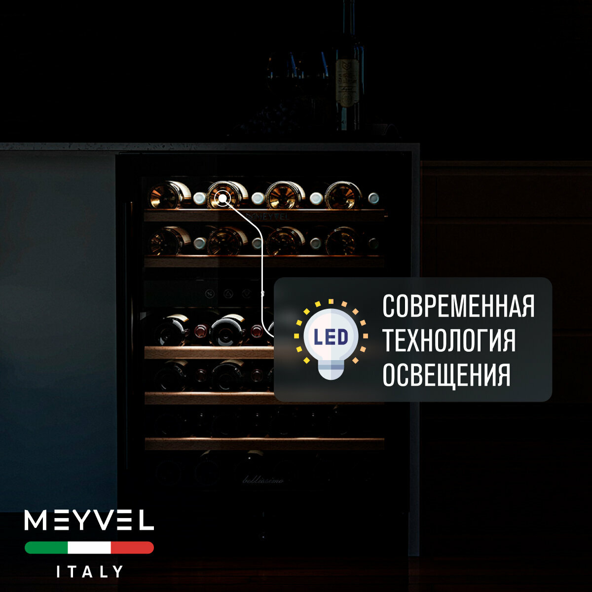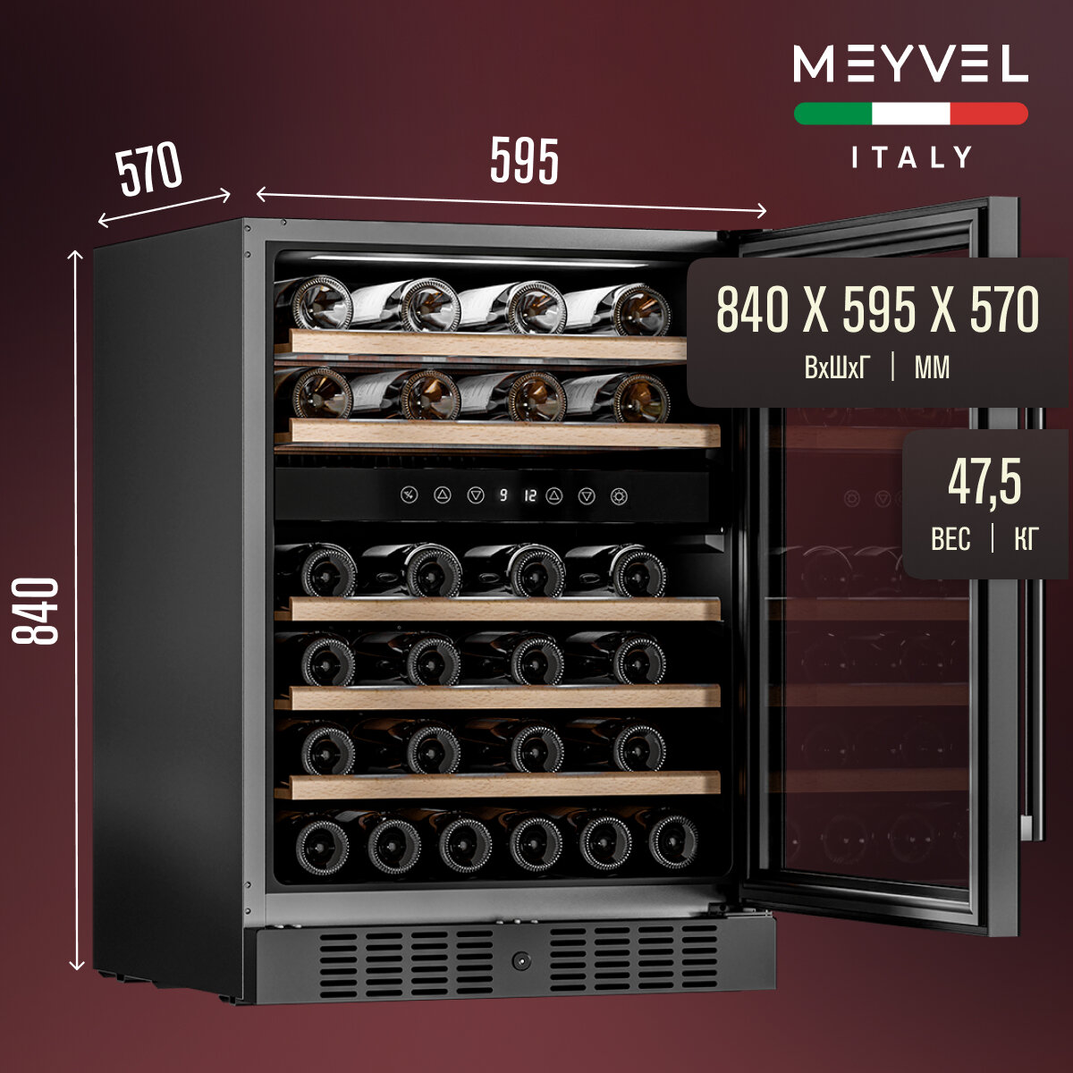 Винный холодильный шкаф Meyvel MV46-KBT2 компрессорный (встраиваемый / отдельностоящий холодильник для вина на 46 бутылок) интересное:
