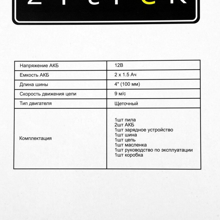 Купить Пила цепная аккумуляторная Zitrek GreenSaw 12 082-1859, 12 В, 1.5 Ач, Li-ion АКБх2 шт, ЗУ Zitrek 104