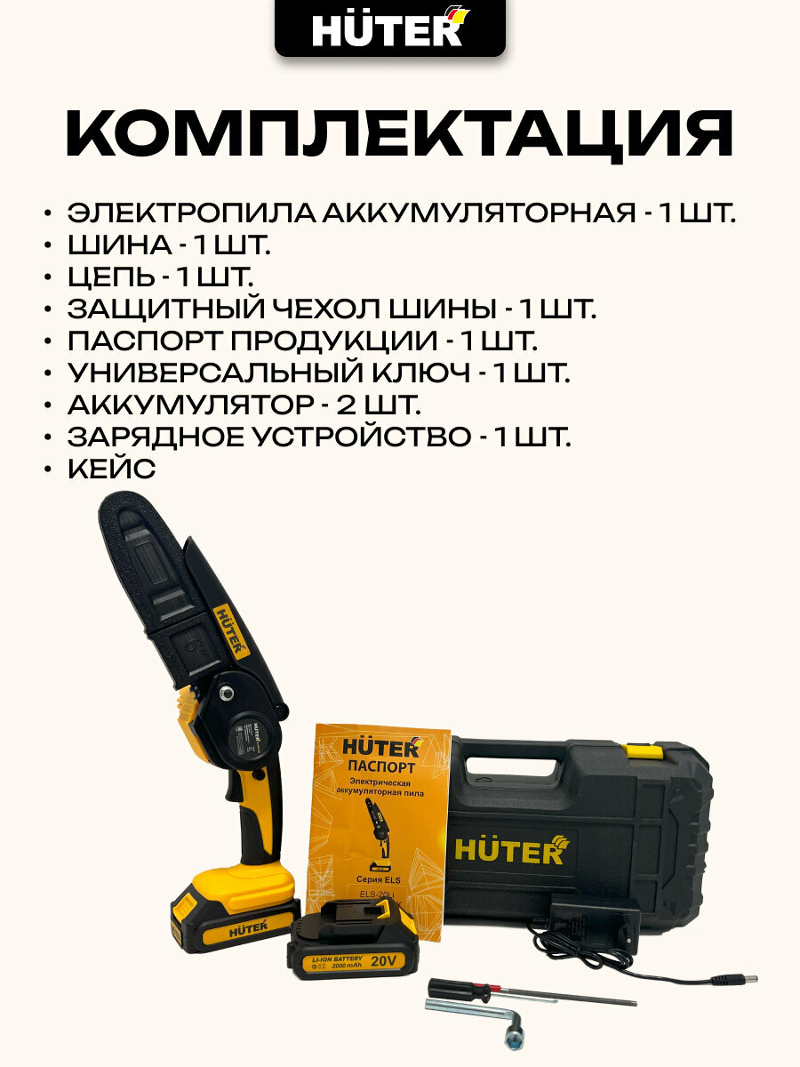 Аккумуляторная электропила Huter els-20-li-2к 70/10/23 интересное: