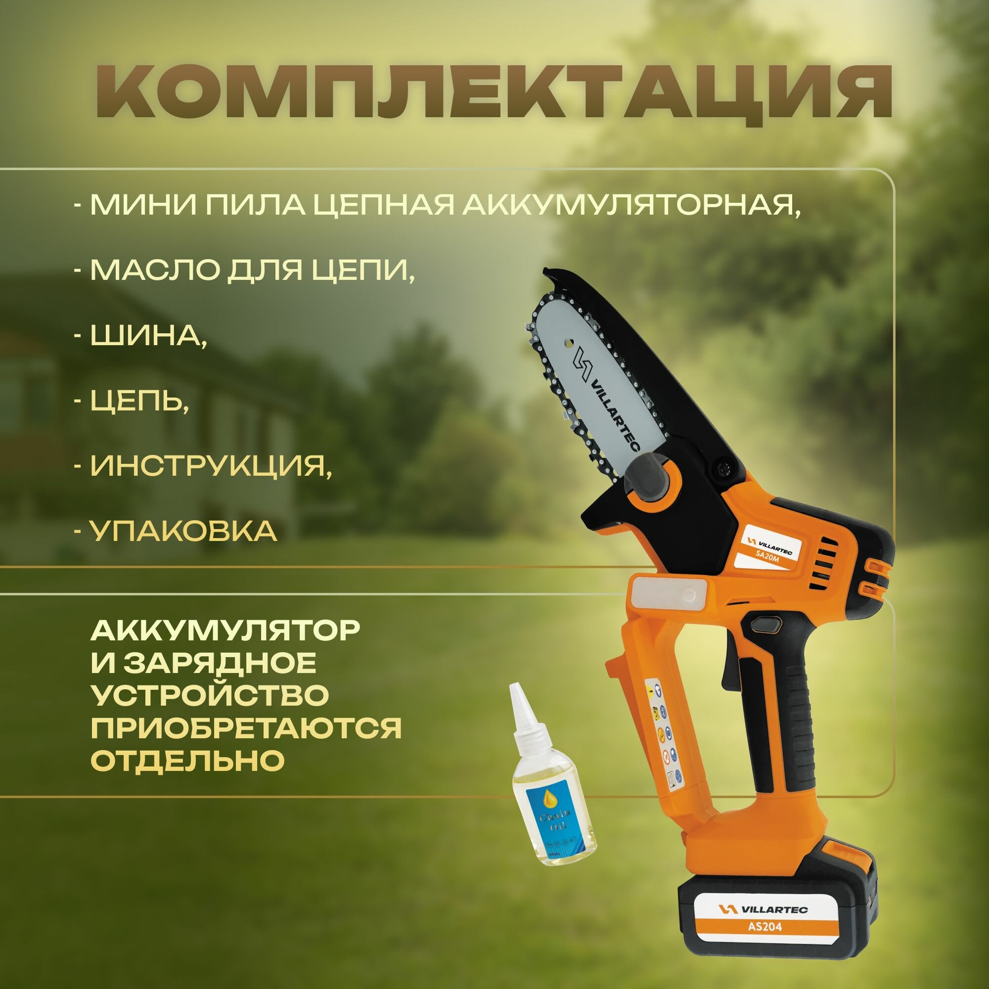 Пила цепная аккумуляторная и секатор садовый 20 В VILLARTEC арт. SA20M интересное: