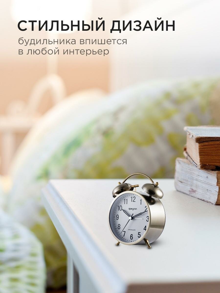 Часы-будильник с подсветкой Apeyron MLT2207-511-8, корпус белый, d-12.4 см, арабский циферблат, бесшумный механизм