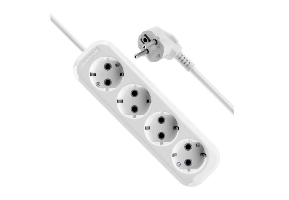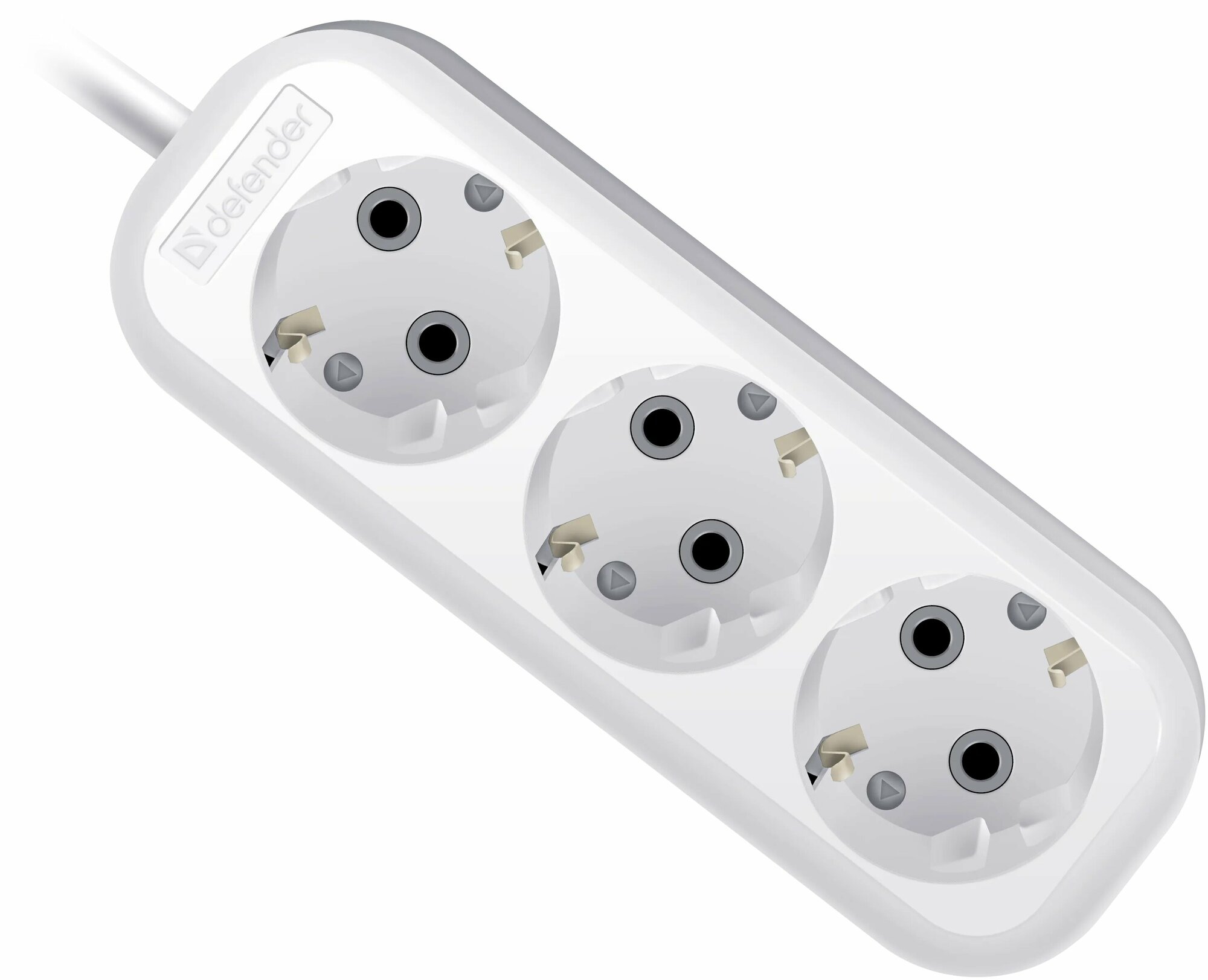 Удлинитель DEFENDER R330 3 гнезда, 1.5 метра, 16А/3500Вт, с заземлением, ПВС 3х1,0мм, белый