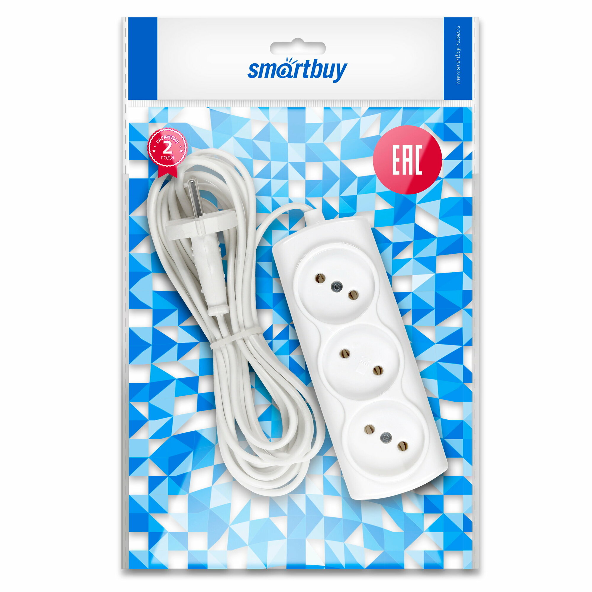 Удлинитель Smartbuy, 3 гнезда 3 метра 6А/1,35кВт без заземления ШВВП 2х0,75
