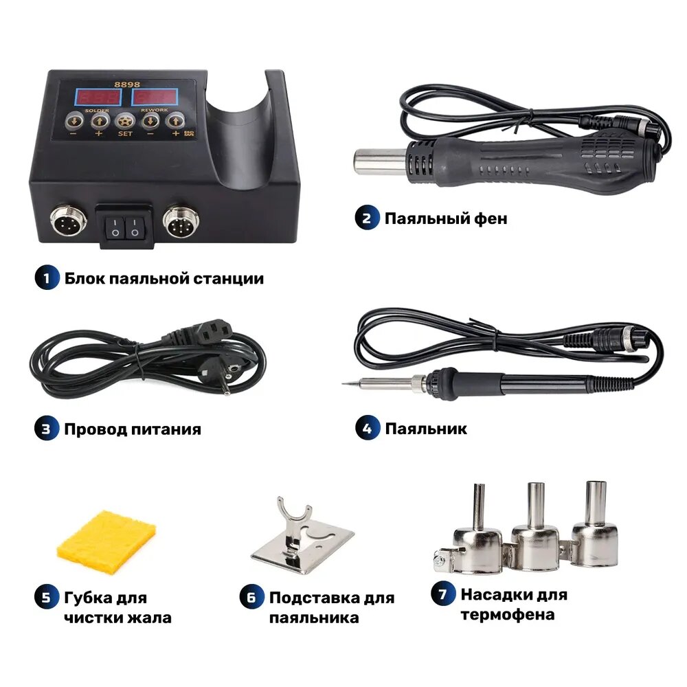 Купить Паяльная станция с феном и паяльником Sumsour 8898, 750 Вт, 8 предметов