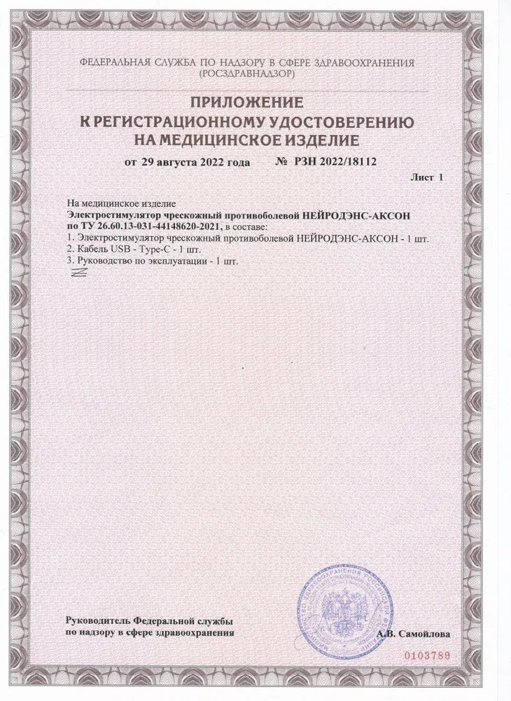 | Подробная комплектация | электростимулятор чрескожный противоболевой НЕЙРОДЭНС-Аксон; кабель USB Type-C, руководство по эксплуатации |