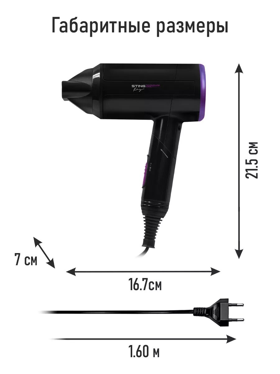 Фен STINGRAY ST-HD800A tourmaline ionic черный чароит
