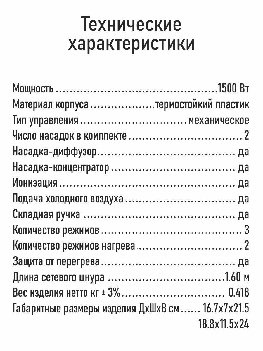 | Мощность фена | 1800 Вт |