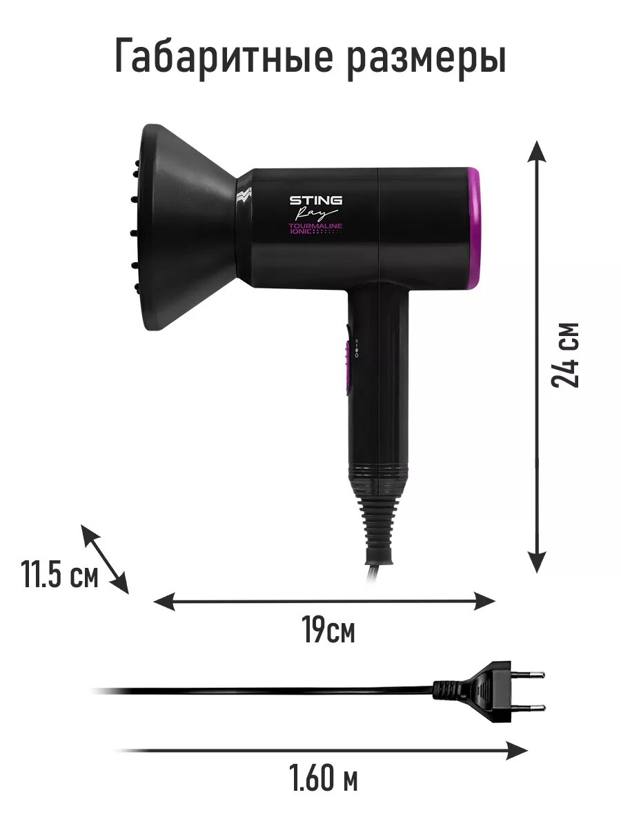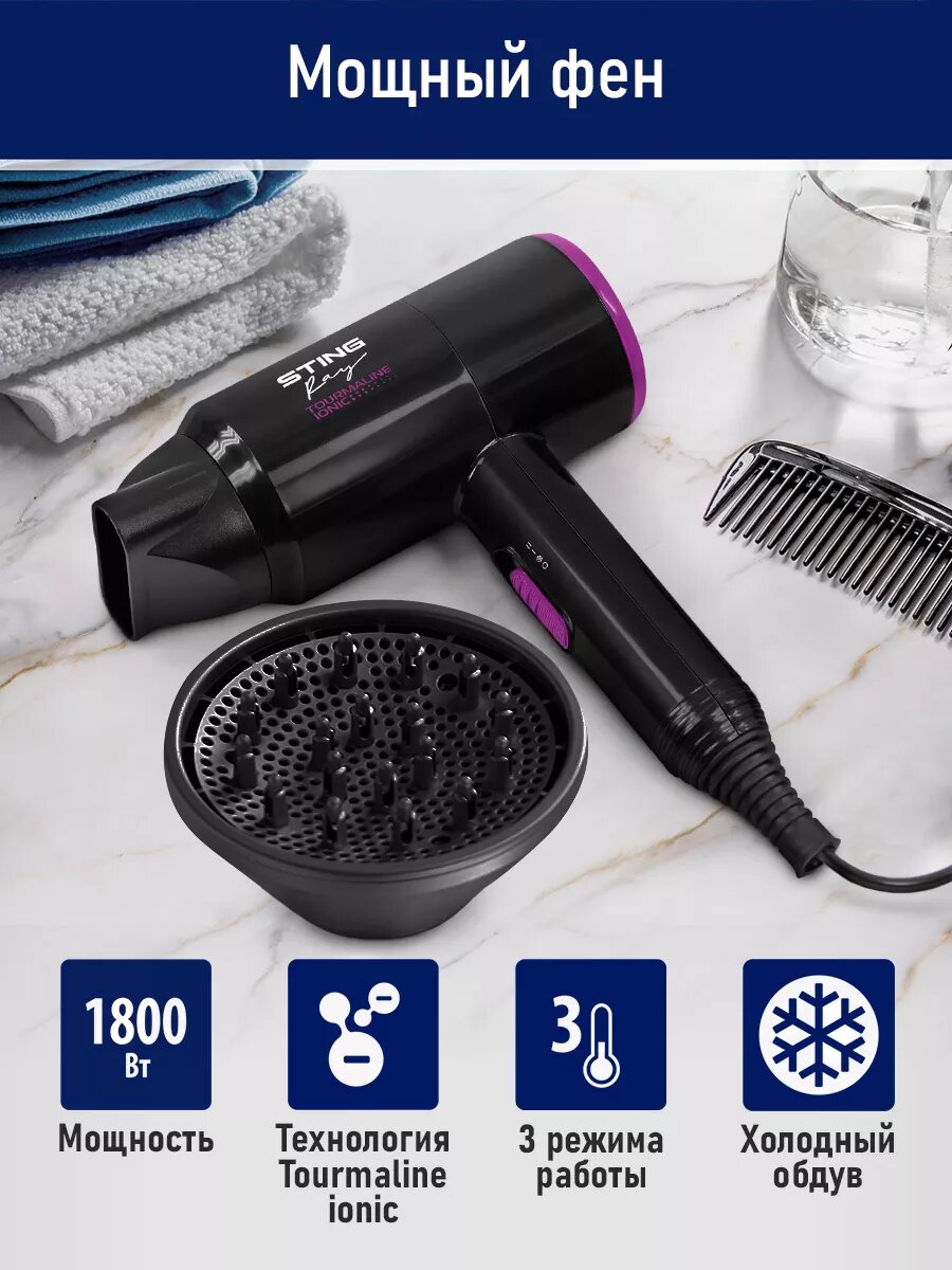 Фен STINGRAY ST-HD800A tourmaline ionic черный чароит