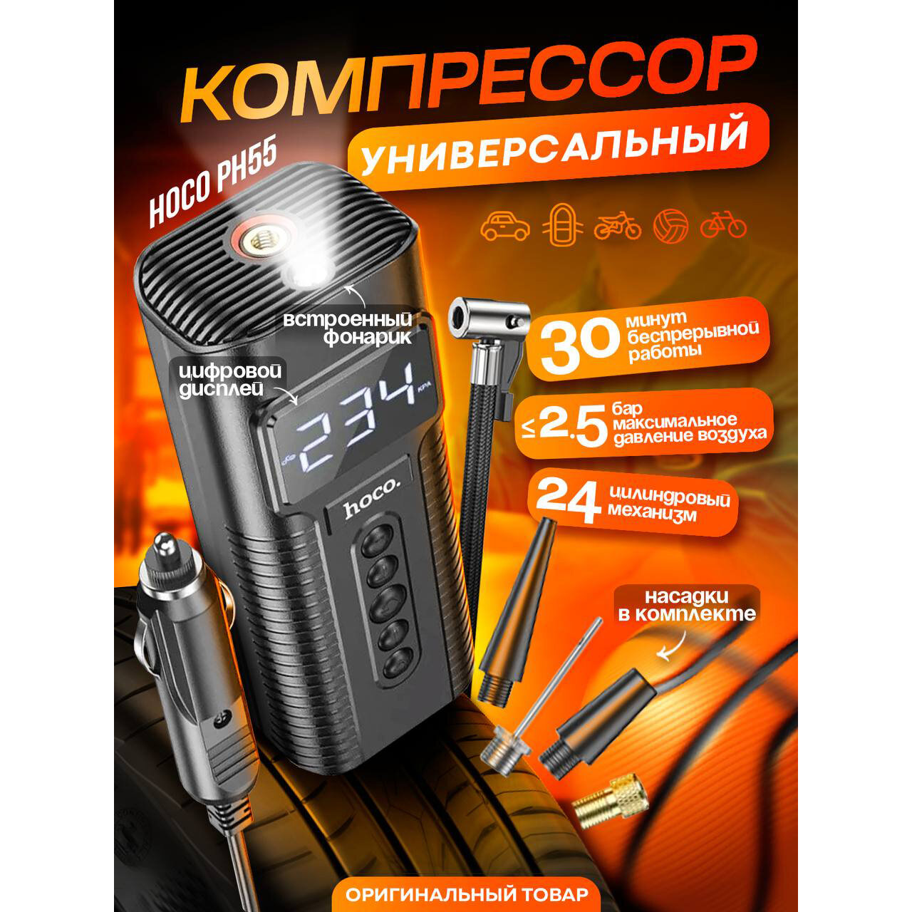 Компрессор автомобильный HOCO PH55, насос автомобильный