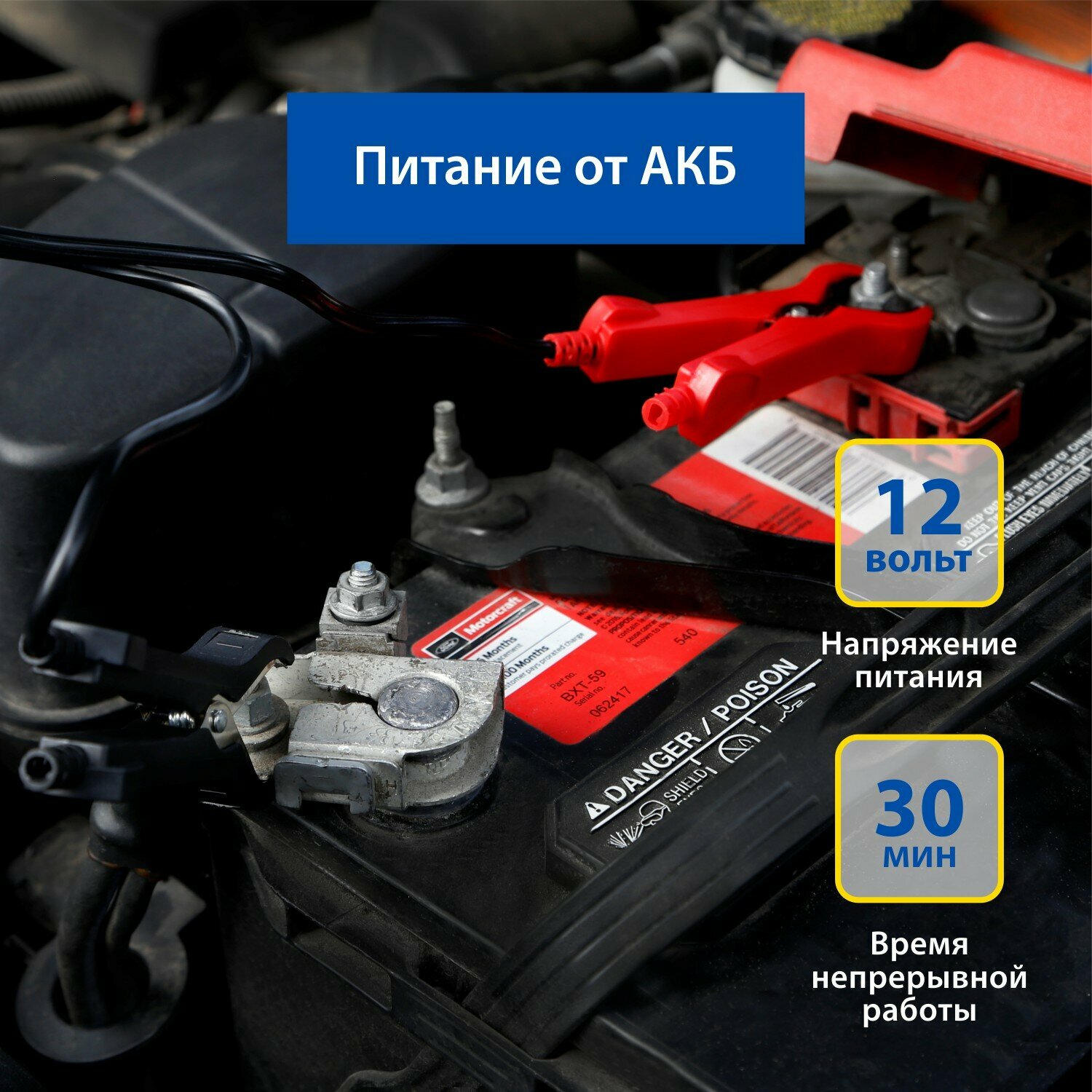 | Тип подключения | к клеммам аккумулятора |
