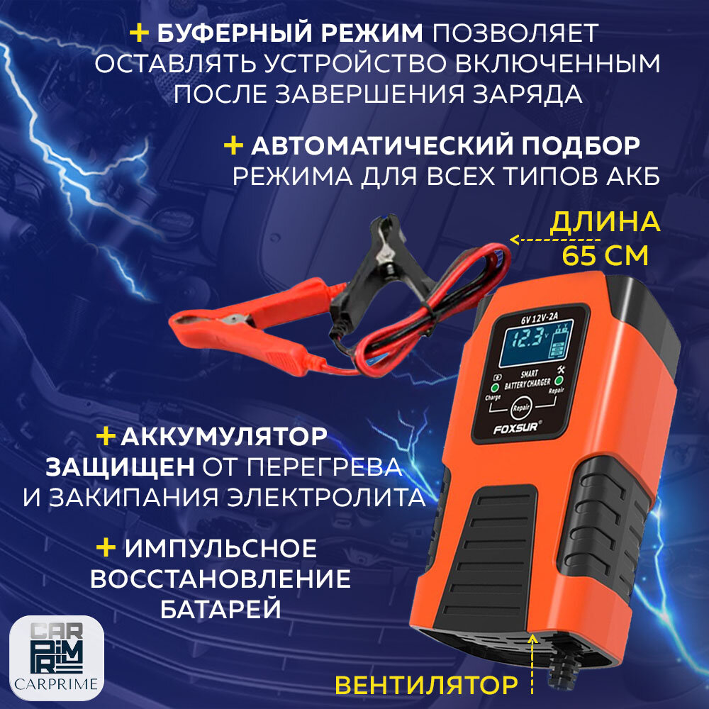 Купить Зарядное устройство Foxsur F-2A для аккумуляторов 6В и 12В, емкостью до 40 Ач