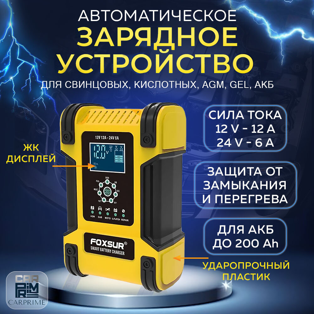 Купить Зарядное устройство Foxsur F-12A для аккумуляторов 12В и 24В, емкостью до 200 Ач