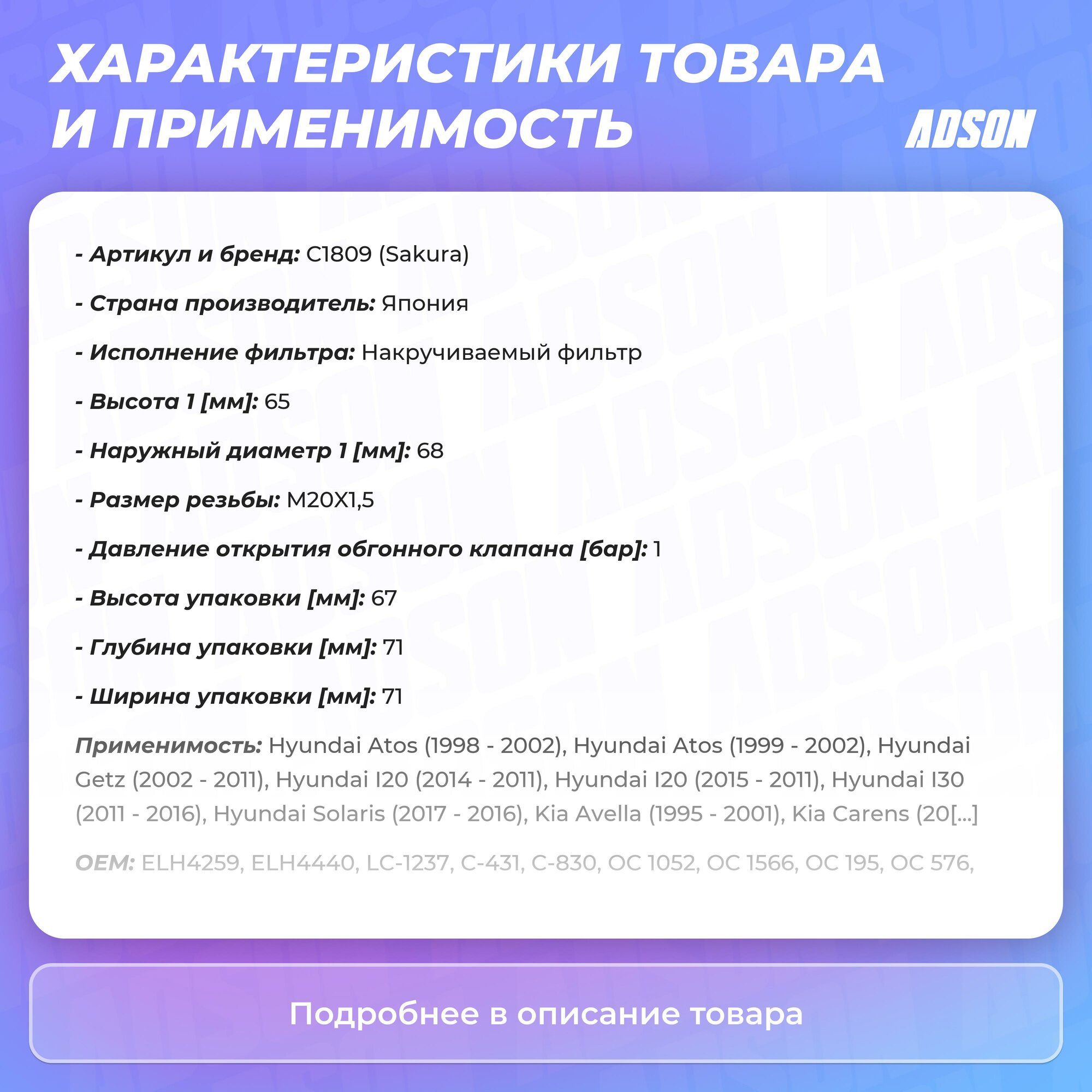 Масляный фильтр SAKURA C1809 интересное: