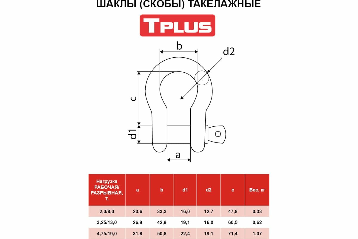 Шакл буксировочный 3.25 т / 13 т (2 шт) Tplus интересное: