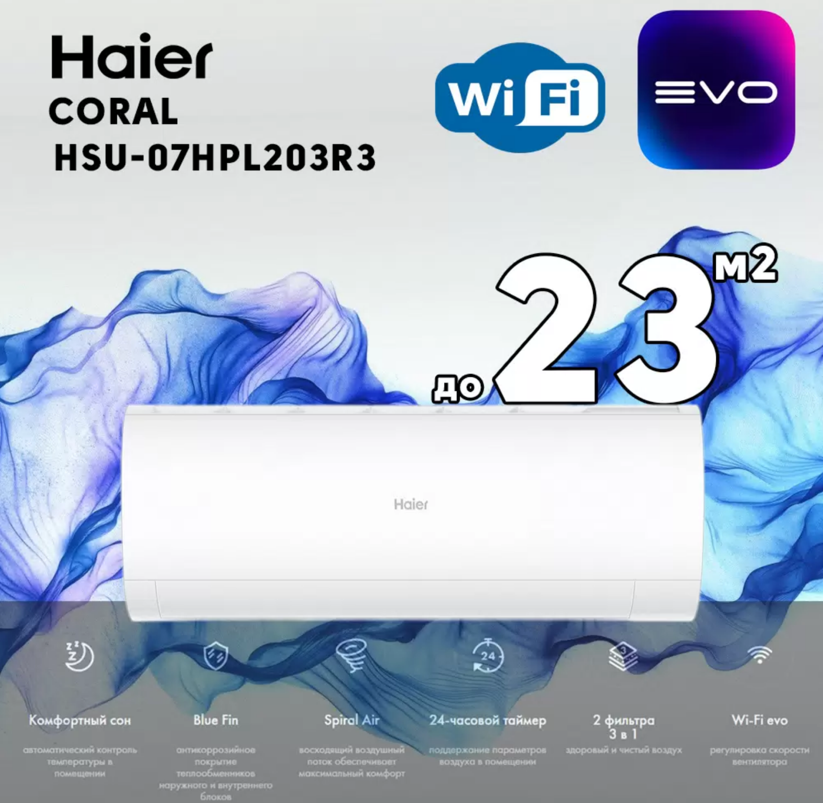 Сплит-система кондиционер HAIER CORAL ON-OFF HSU-12HPL203/R3 до 35м2, Wi-Fi новинка 2024