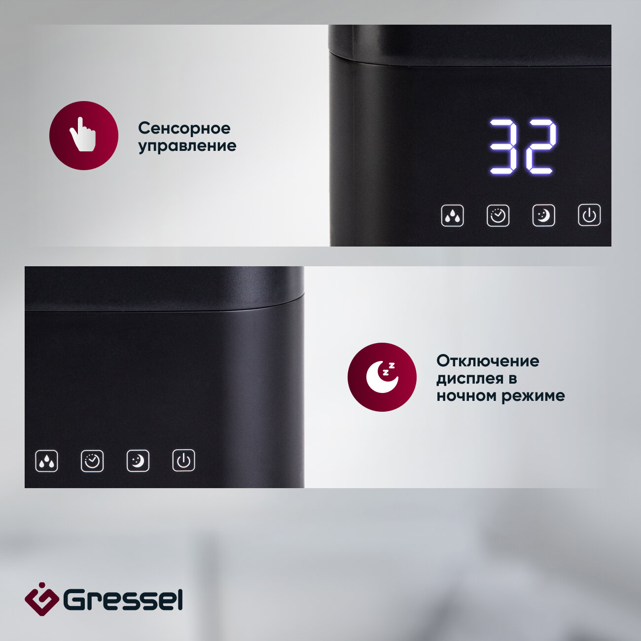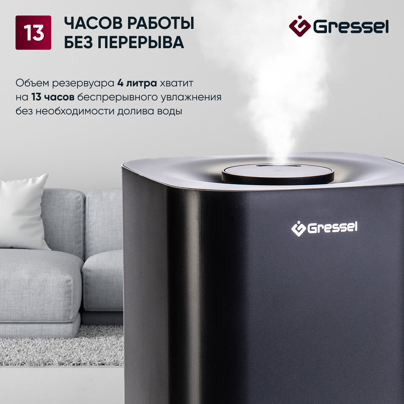 Купить Увлажнитель воздуха для дома Gressel GRU-5001, ультразвуковой с фильтром очистки воды, 4л, аромадиффузор