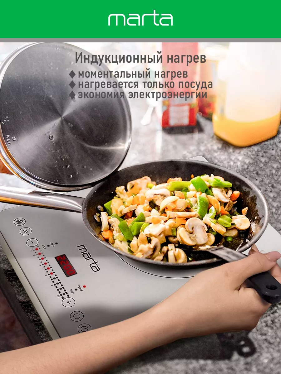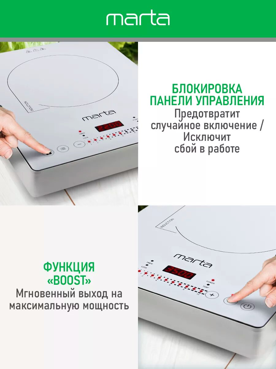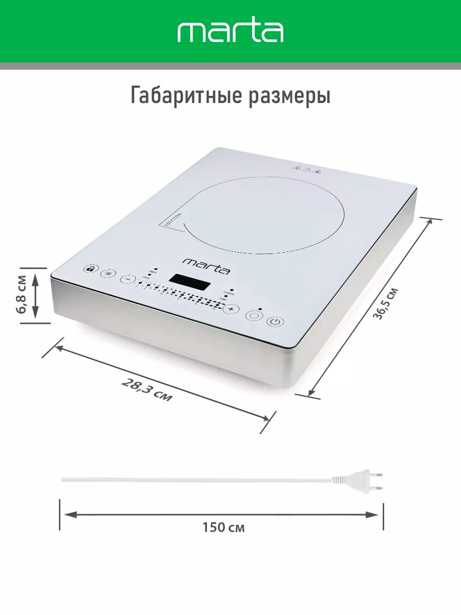 Электрическая индукционная безимпульсная плитка MARTA MT-4221 белый жемчуг