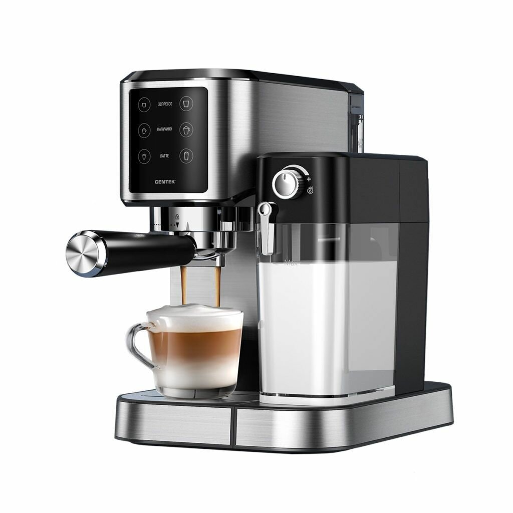 Купить Кофемашина полуавтоматическая c автокапучинатором CENTEK CT-1169: 1450Вт, 3в1, сенсорный LED дисплей, кофеварка рожковая