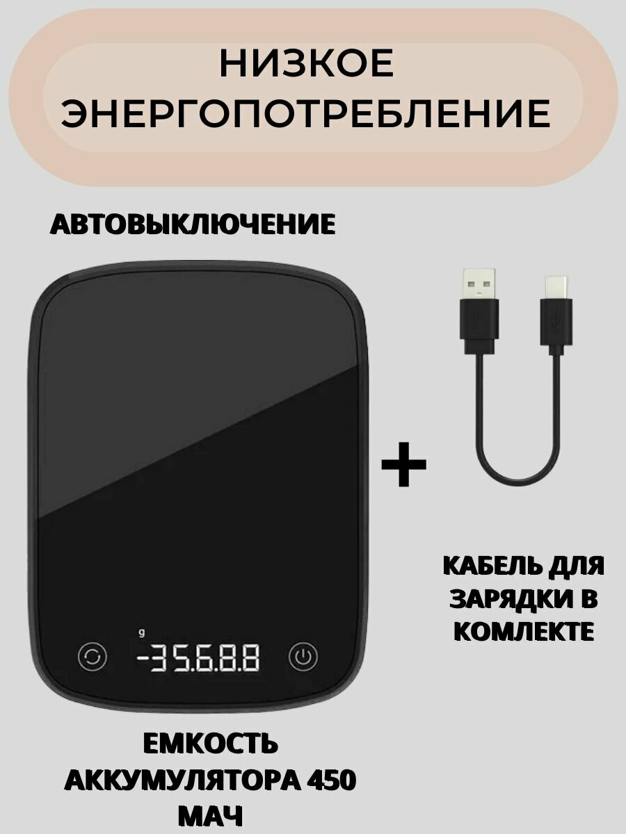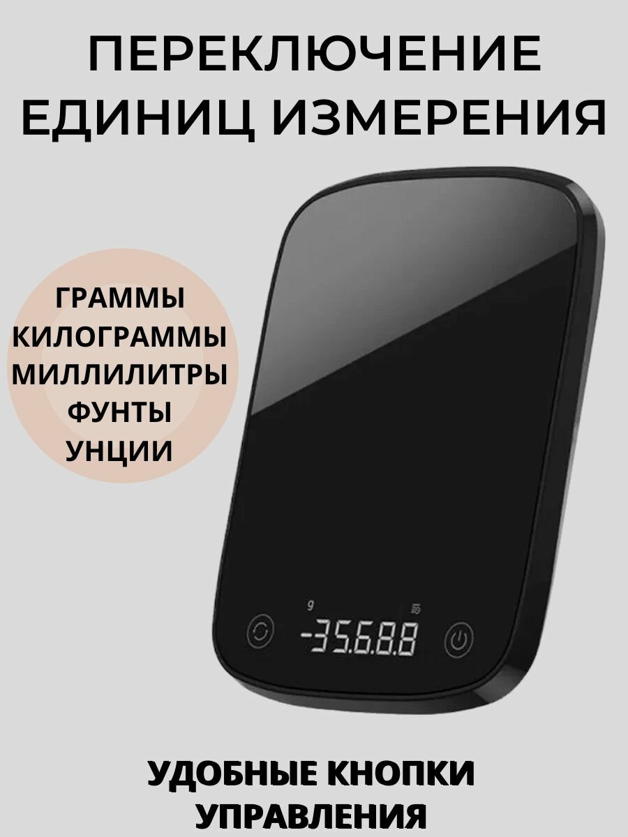 Электронные весы для кофе с таймером 3kg/0.1, черные
