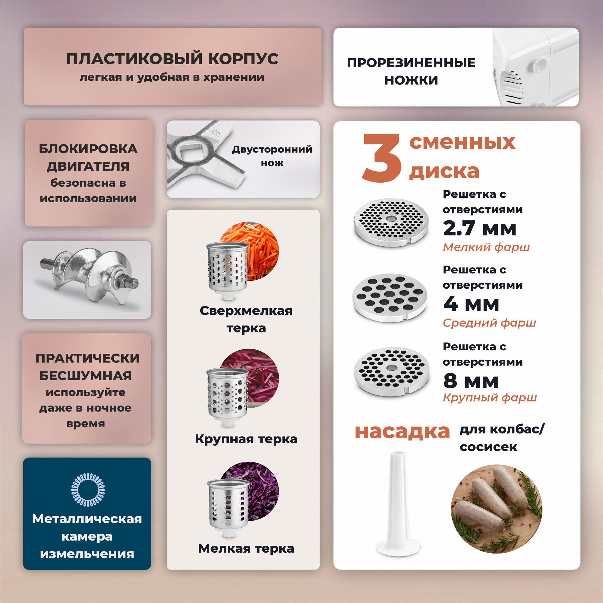 | Насадки | диск для фарша / насадка для приготовления колбас |