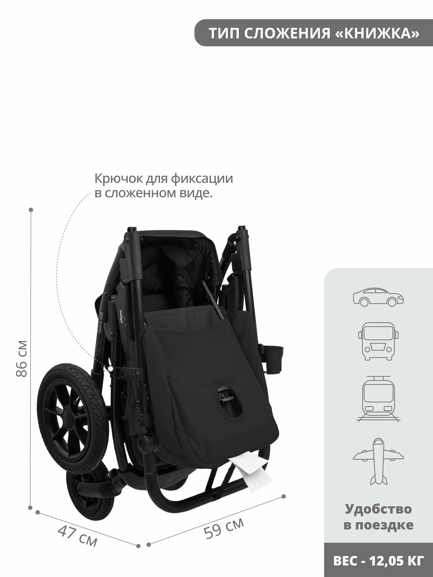Прогулочная коляска Indigo G1 EPICA XL AIR черный интересное: