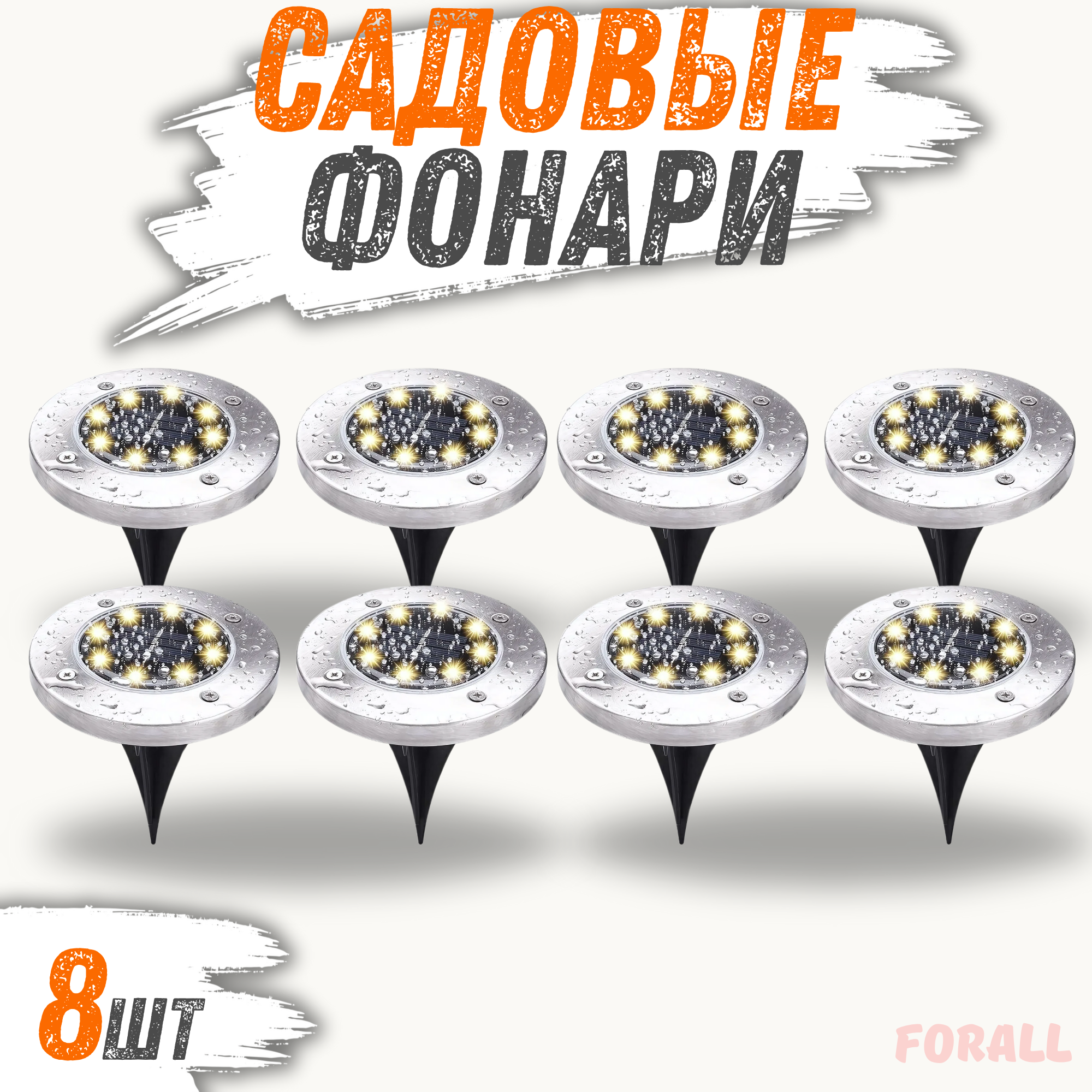Уличный садовый светильник ForAll на солнечной батарее, ландшафтный для дачи и садовых дорожек 8 штук интересное:
