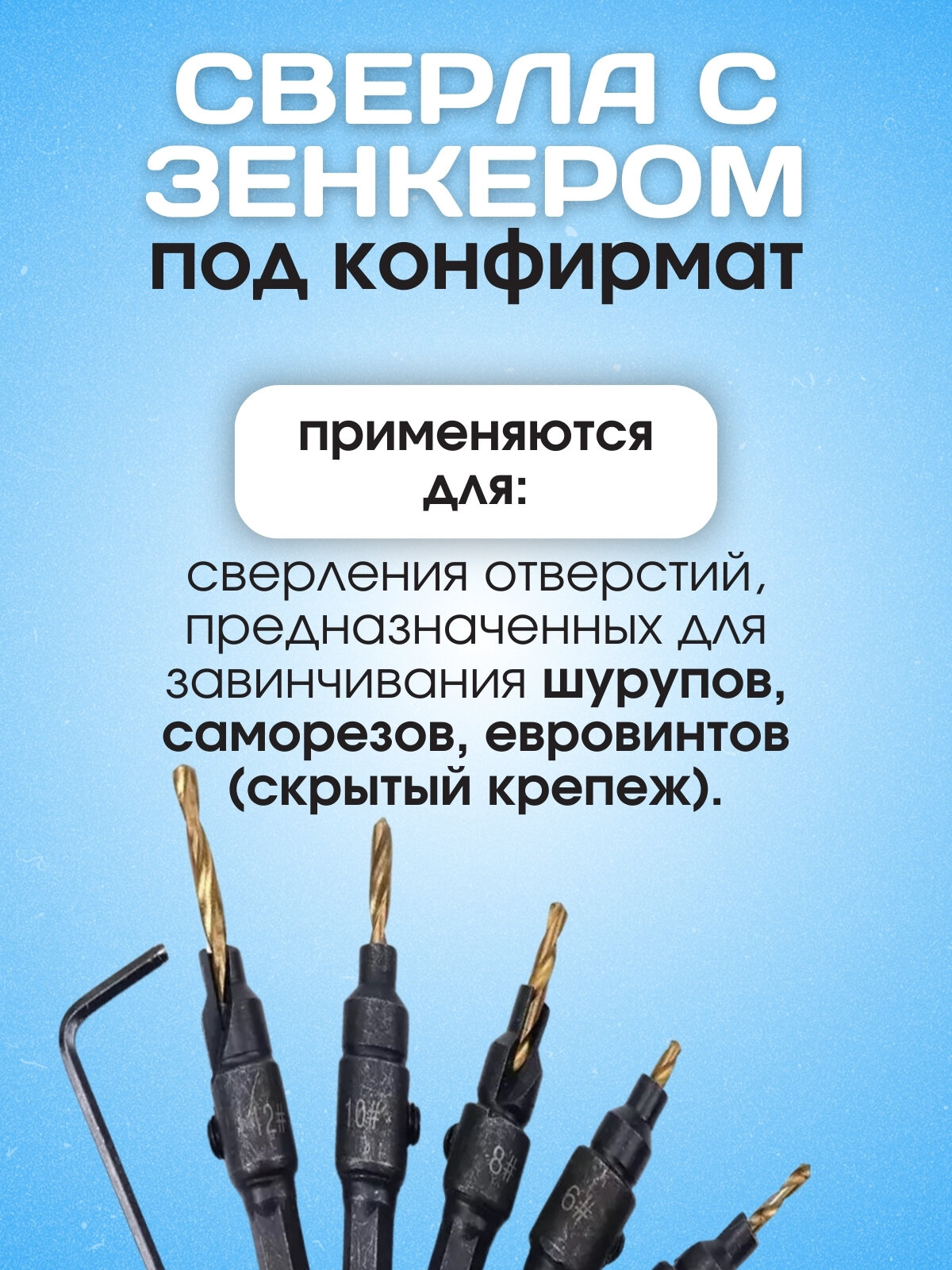 Ниже Вы можете прочитать отзывы на Сверло с зенковкой по дереву под конфирматы с шестигранным хвостиком, ознакомится с подробными характеристиками, посмотреть интересные обзоры и фотографии на Сверло с зенковкой по дереву под конфирматы с шестигранным хвостиком.
