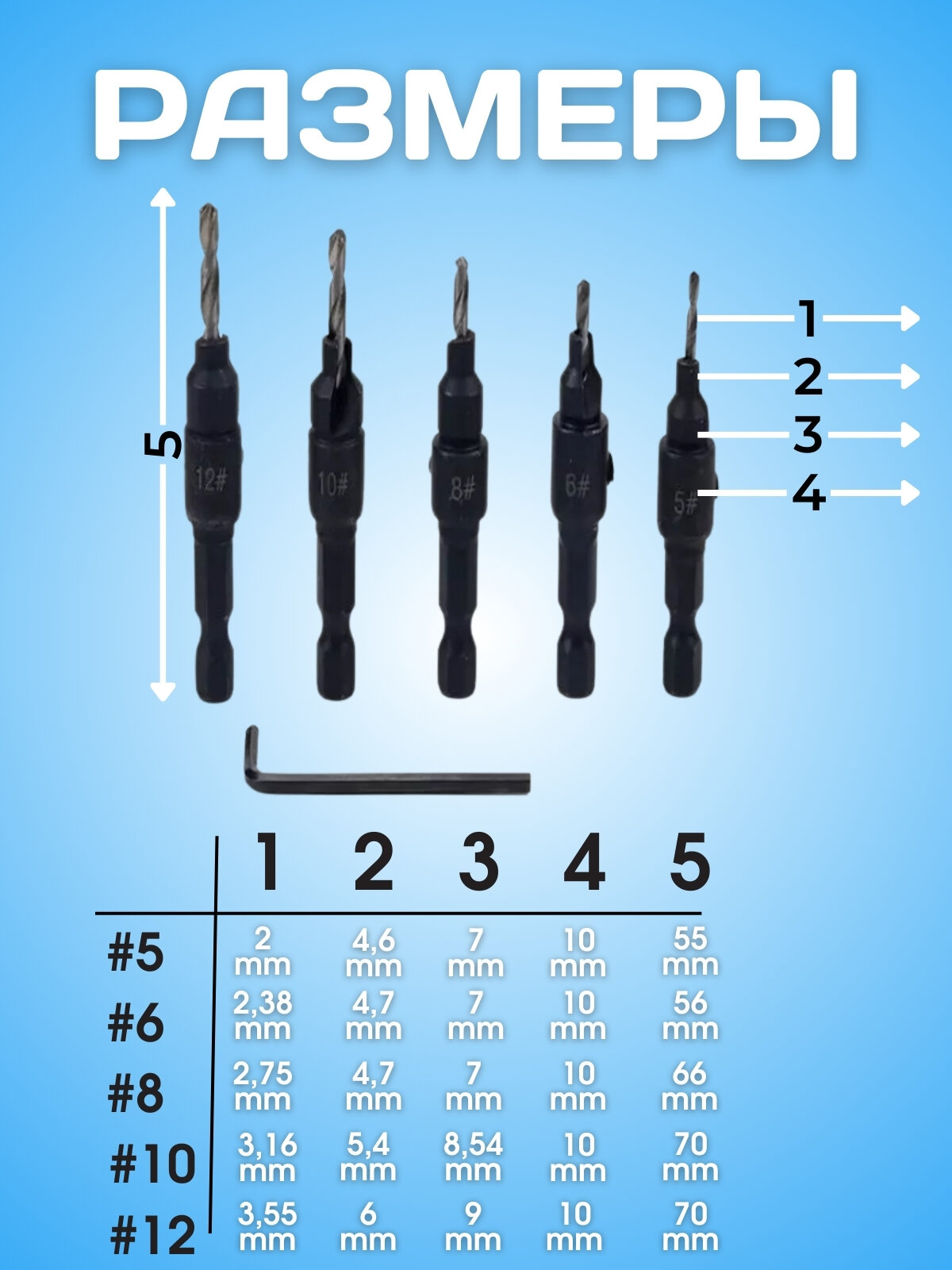 Сверло с зенковкой по дереву под конфирматы с шестигранным хвостиком интересное: