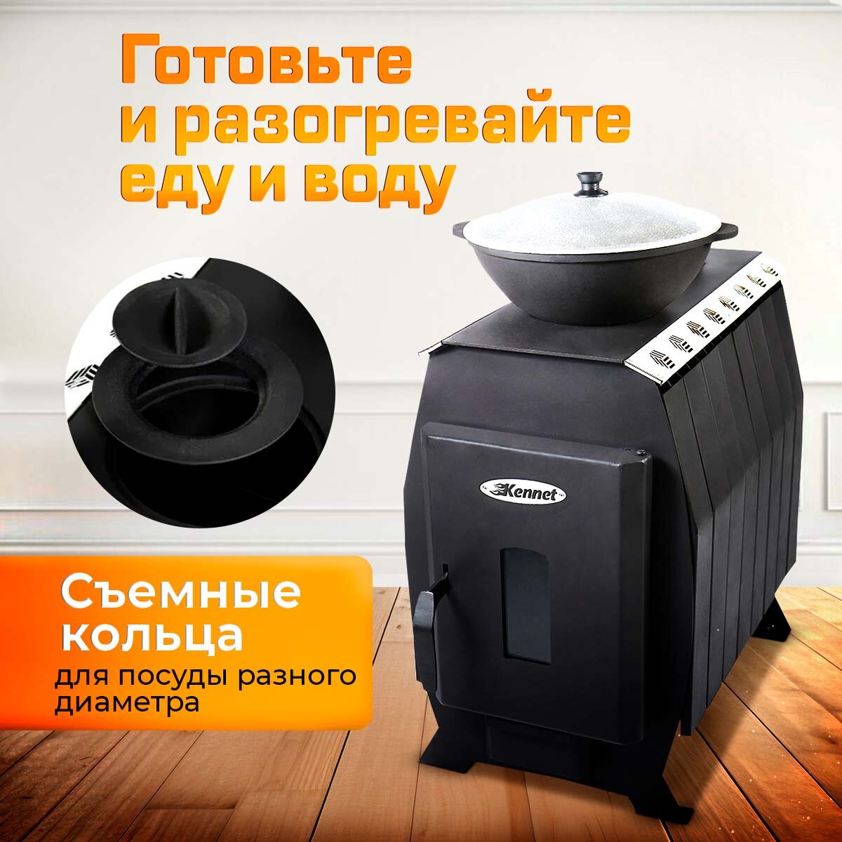 СохранитьОтопительная печь дровяная с варочной панелью Kennet Ария 200 вес 77 кг (со стеклом) до 200 куб.м интересное: