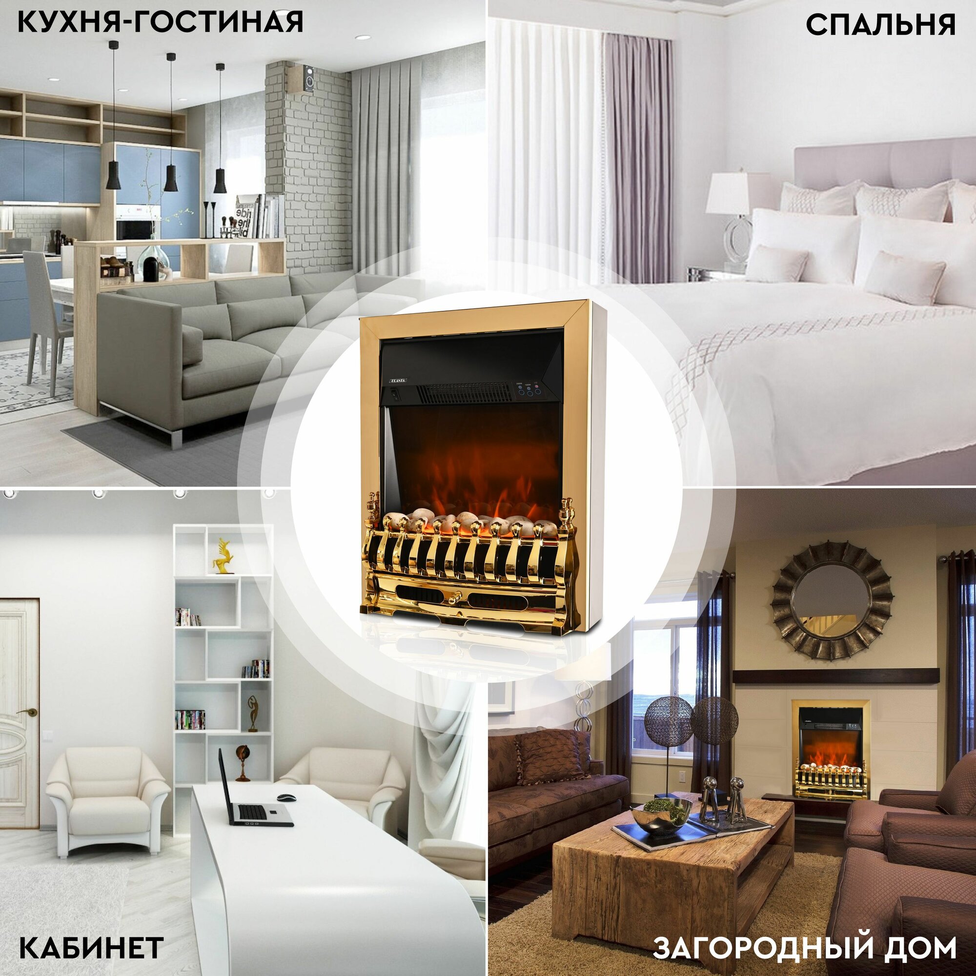 Купить PLANTA Электрокамин PFP-FS400, отдельностоящий / встраиваемый камин электрический, пять уровней яркости пламени Real Life, цвет-золото