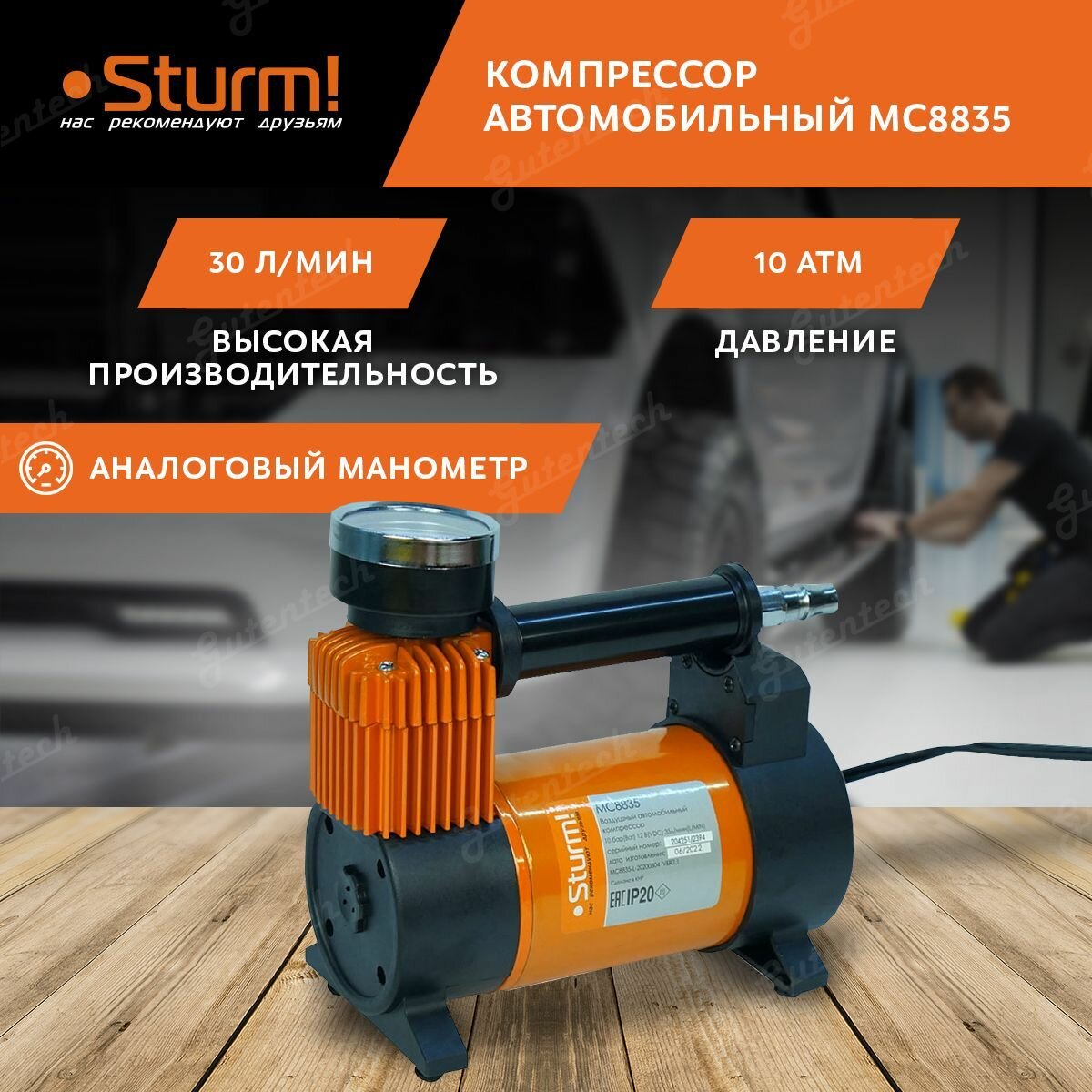 MC8835 Компрессор автомобильный Sturm, 12 В, 35 л/мин, 10 бар