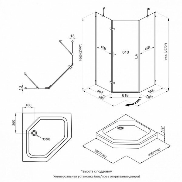 Душевая Ширма Triton Сигма-Хром, 90х90, пятиугольник, цвет профиля - хром