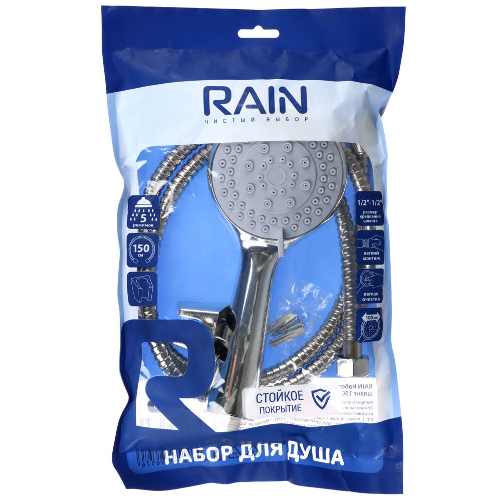 RAIN Набор для душа, лейка 100мм, 5 режимов, шланг 150см, держатель