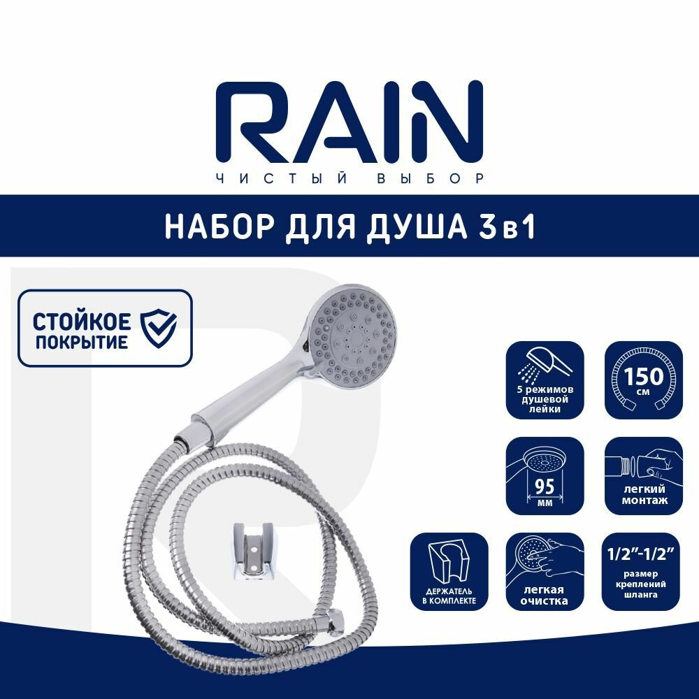 Набор для душа Rain, лейка 95мм, 5 режимов, шланг 150см, держатель для душа интересное: