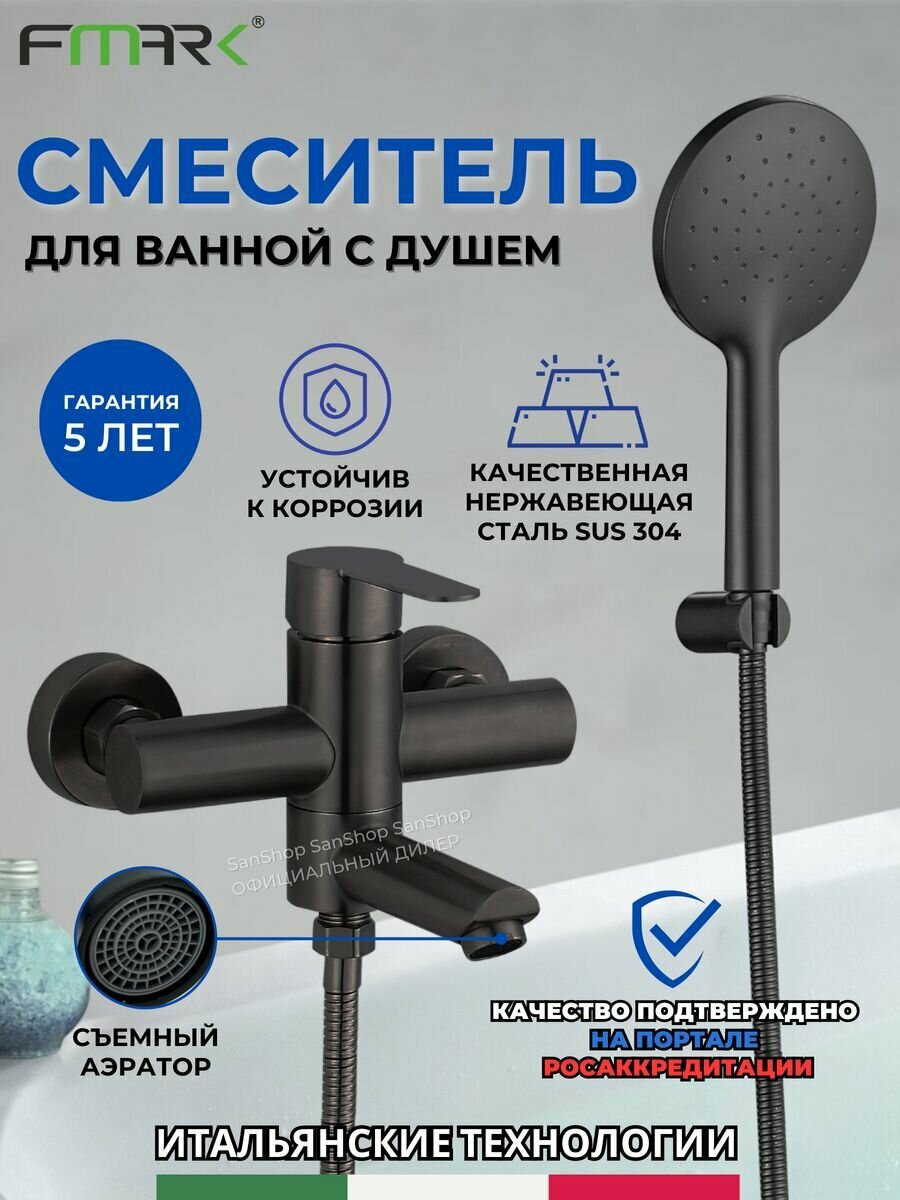Смеситель для ванны и душа Fmark FS8304H черный