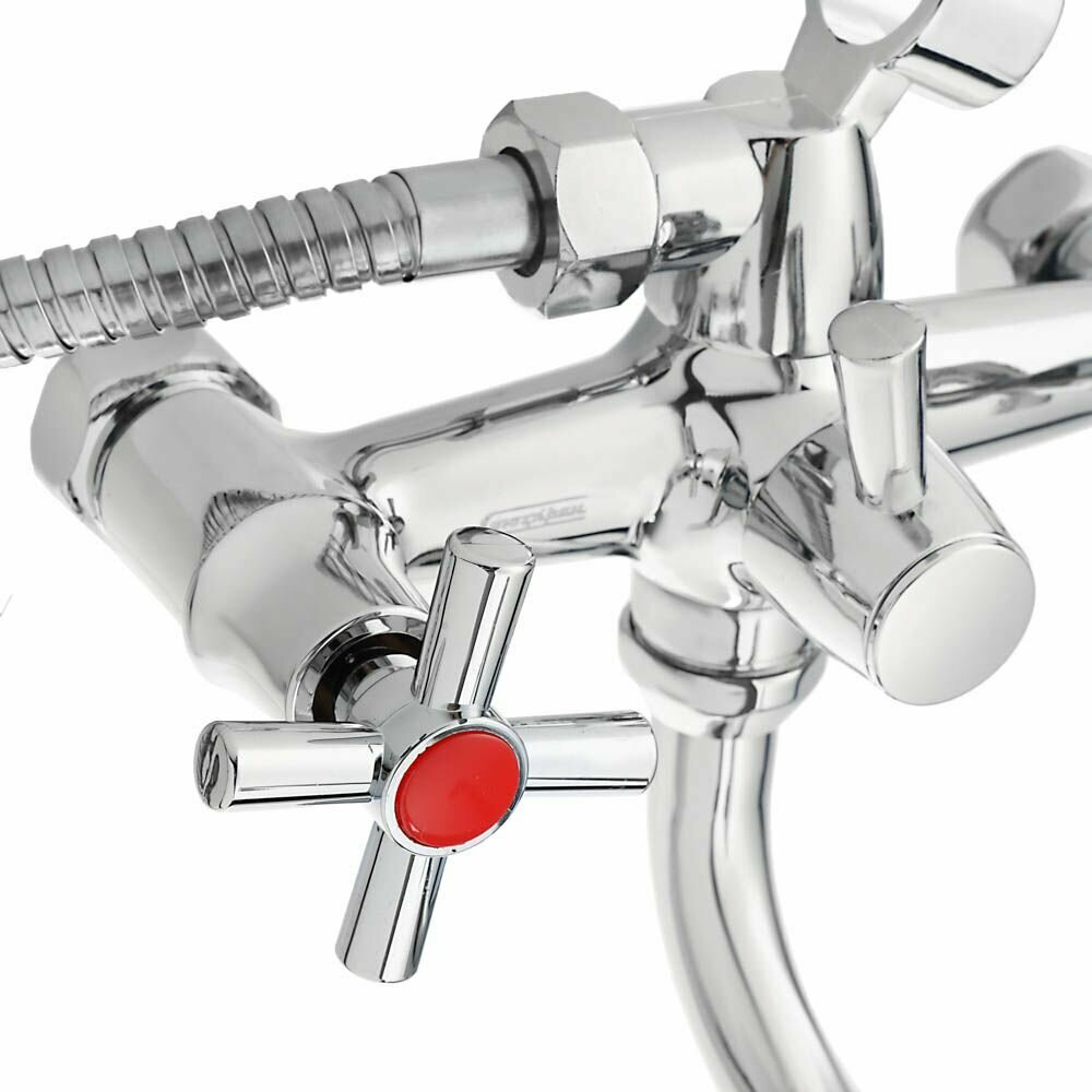Купить Смеситель для ванны с душем вентильный СоюзКран SK08-S217, длинный излив 30 см, лейка и шланг для душа в комплекте