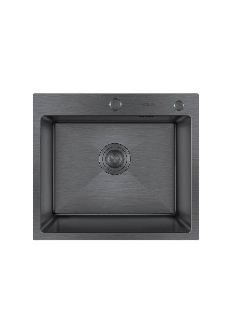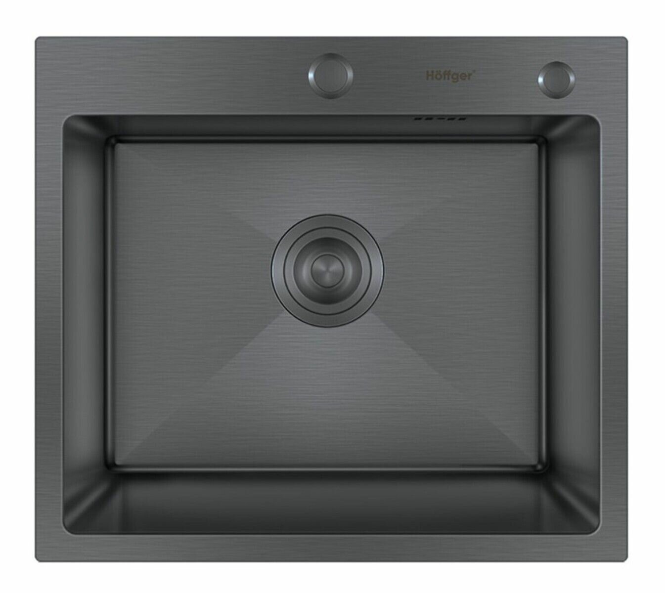 Мойка для кухни из нержавеющей стали врезная прямоугольная 50х45 см. Hoffger HFG-5045B черный графит