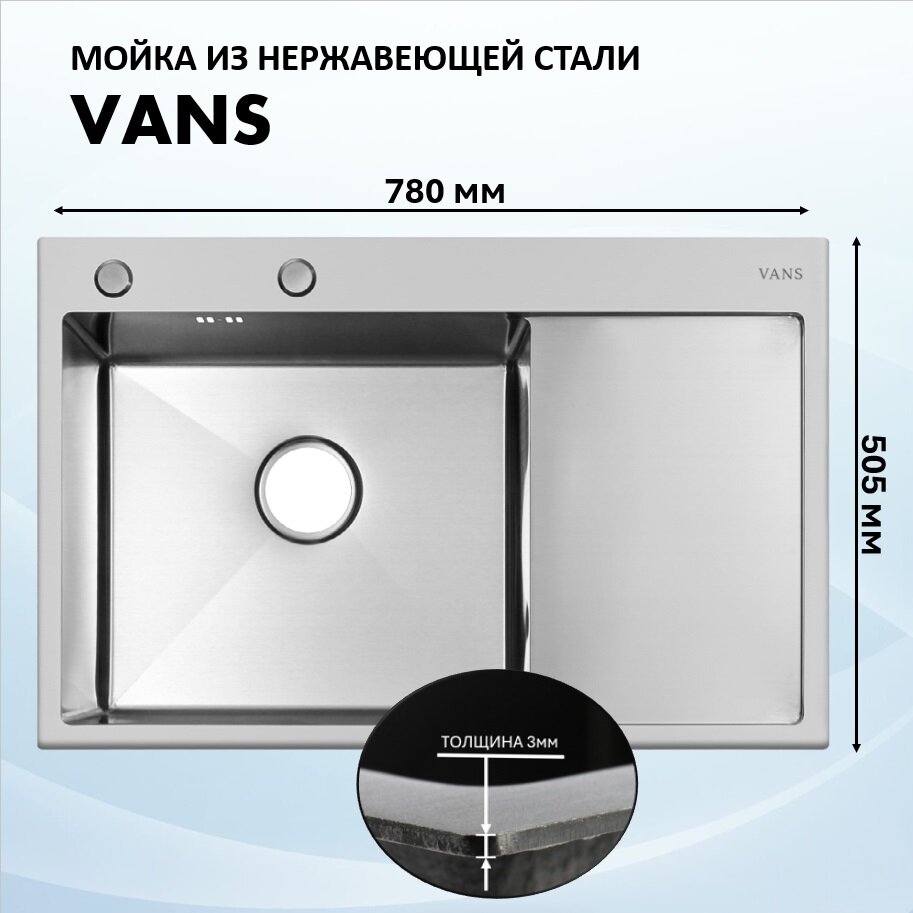 Кухонная мойка VANS 780*505 (780*505) Satin правая нерж. сталь