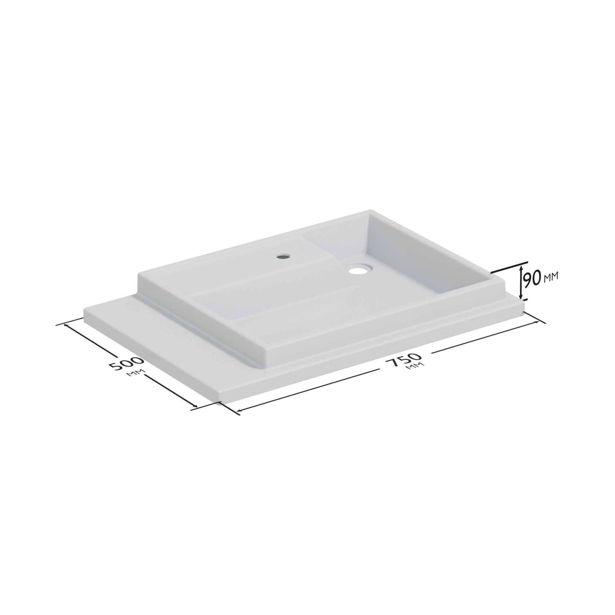 Раковина над стиральной машиной "Юпитер 750*500" правая без кронштейнов в усиленной упаковке 900138W