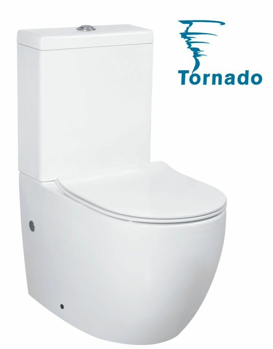 Унитаз напольный безободковый торнадо обратного потока Bau Stil Hurricane-2, усиленное бысросъемное сиденье дюропласт микролифт