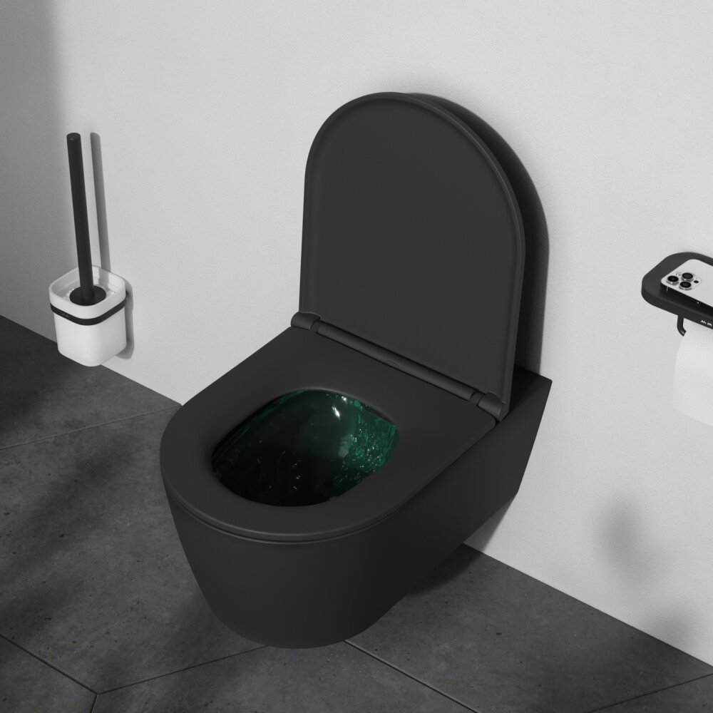 Безободковый унитаз AM.PM "Func FlashClean", подвесной, матовый черный, с сиденьем