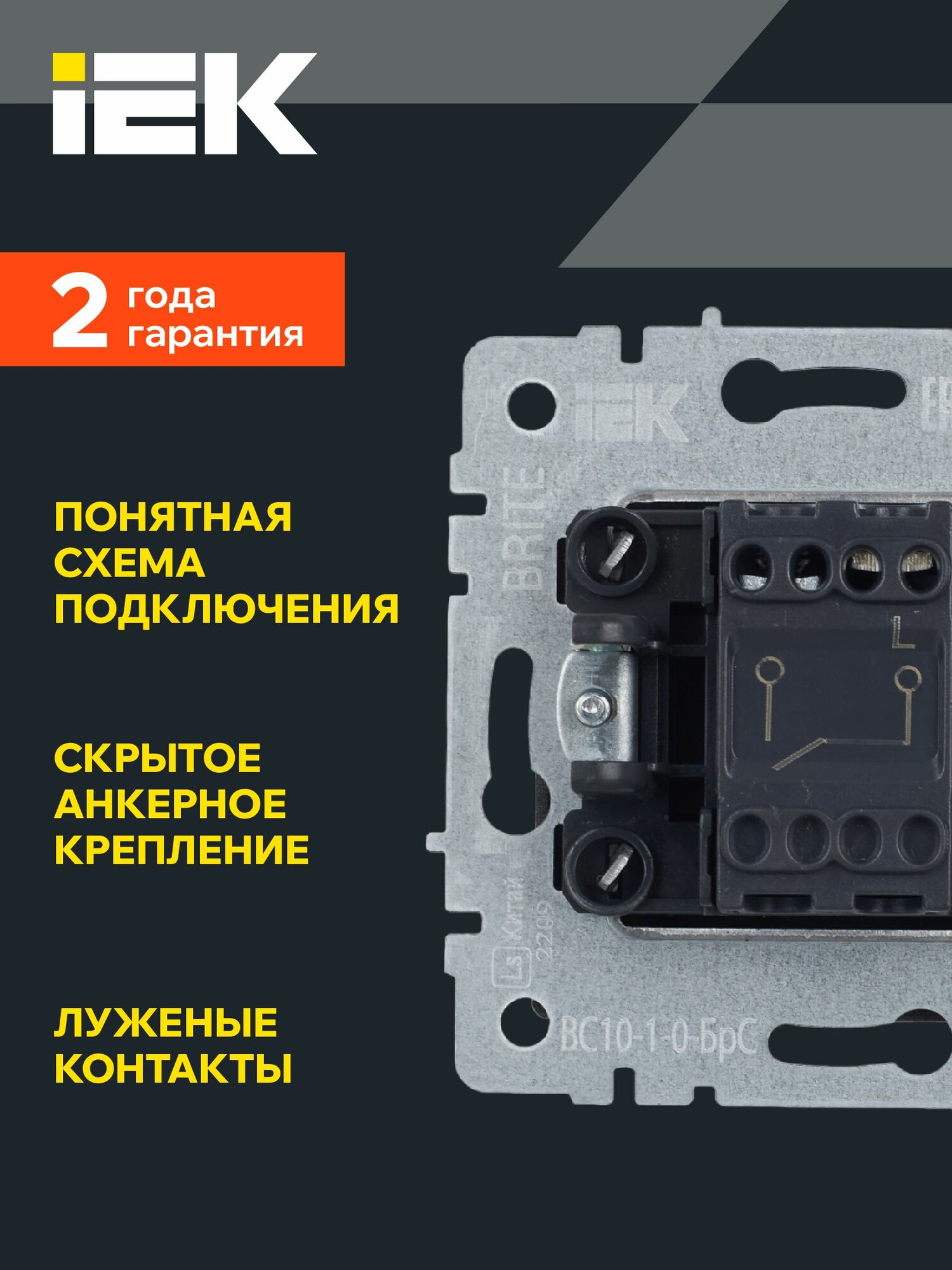 Выключатель одноклавишный BRITE 10А ВС10-1-0-БрШ IEK