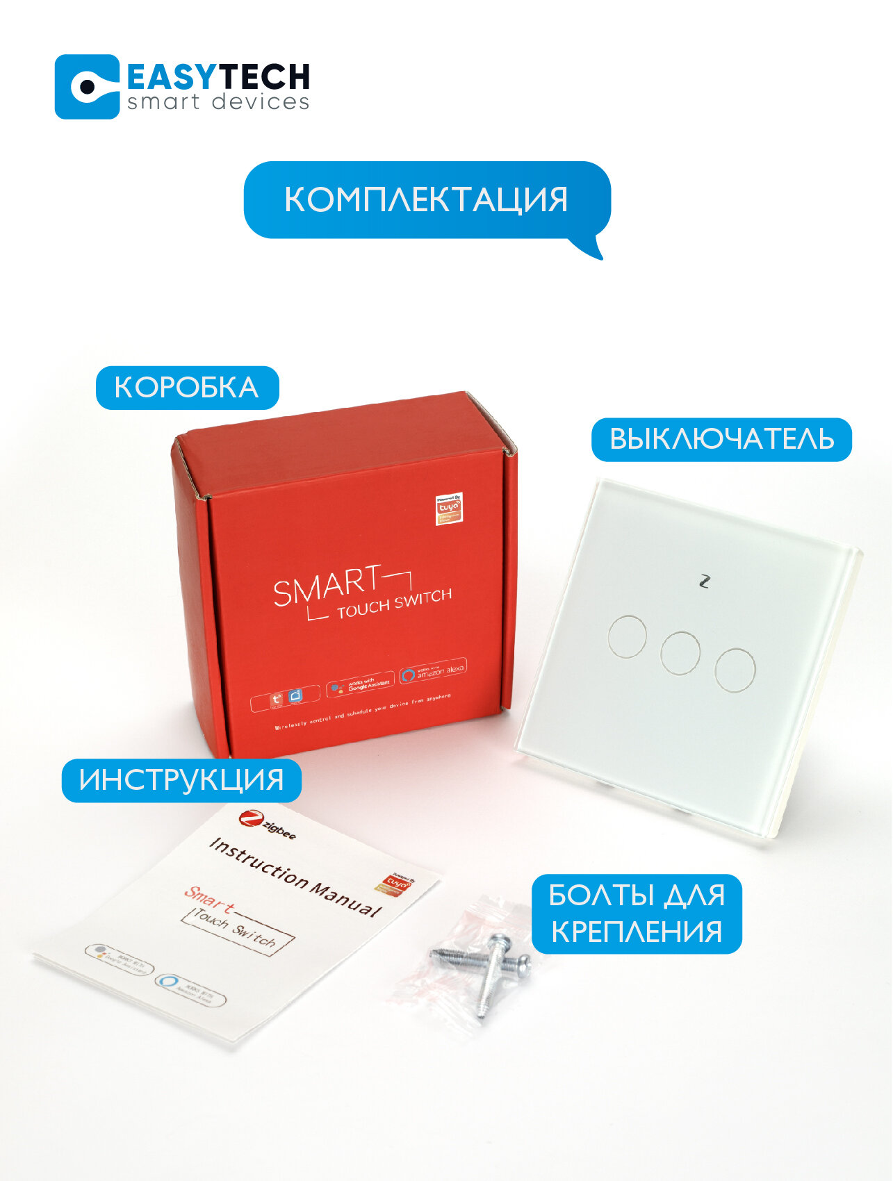 СохранитьУмный сенсорный Zigbee выключатель с Алисой трехклавишный без нуля на 1500 W Tuya, белый без конденсатора интересное: