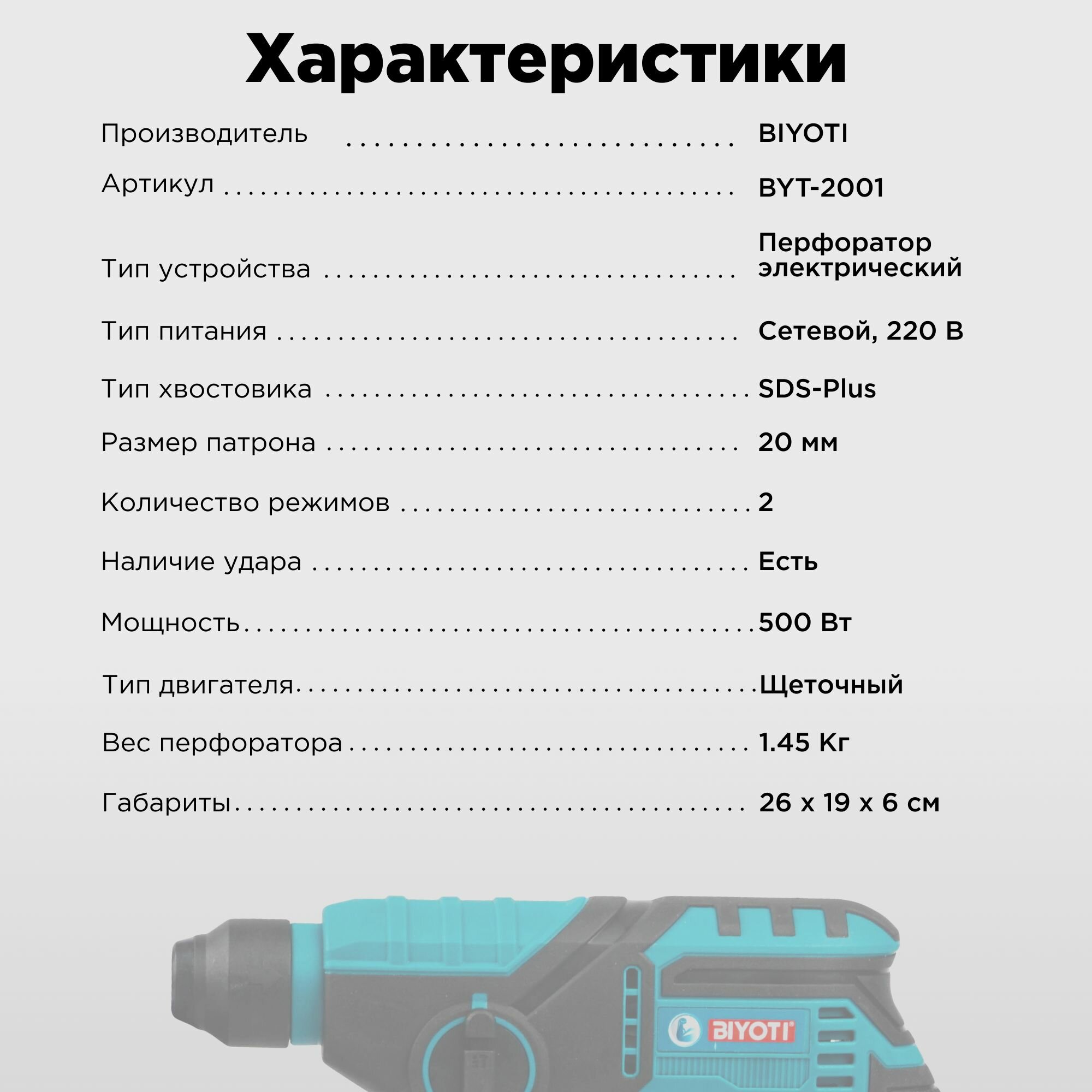 Перфоратор сетевой, 500W, BIYOTI интересное: