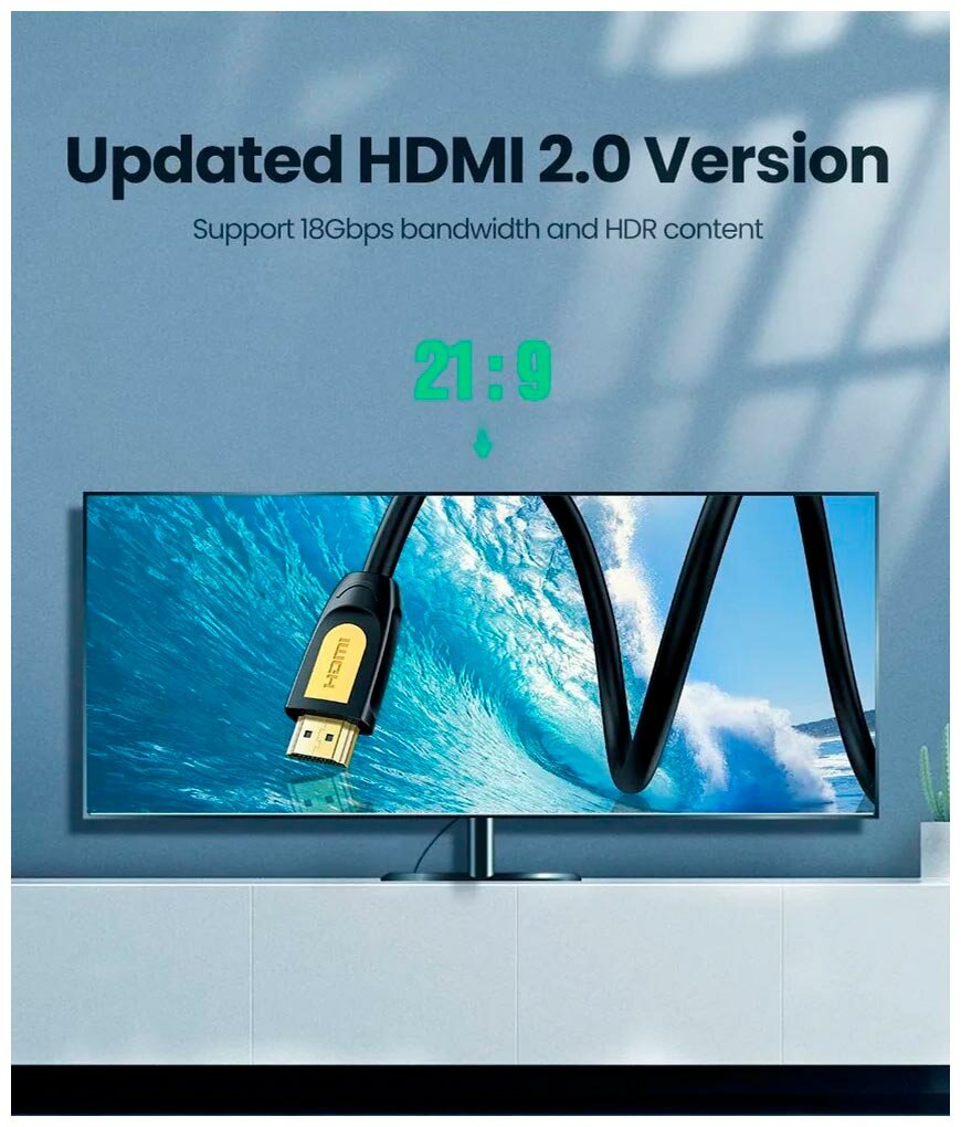 Кабель Ugreen HDMI 4K, 2 м, черный с желтым (10129)