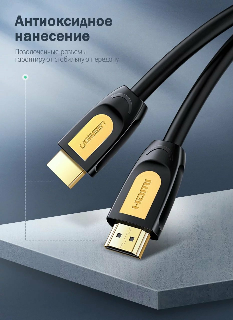Кабель UGREEN HD101 10129_ HDMI Male / Male Cable, 2м, черно-желтый