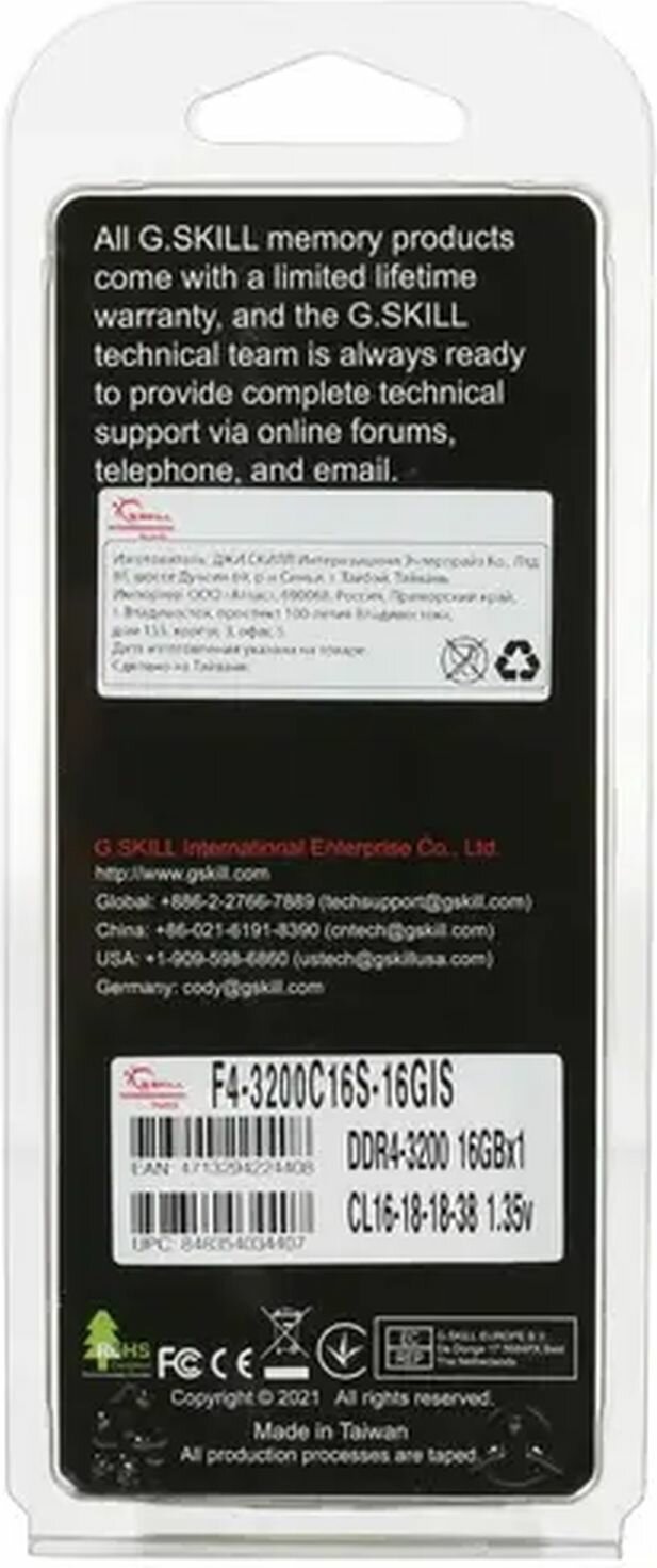 F4-3200C16S-16GIS Оперативная память G.Skill AEGIS (F4-3200C16S-16GIS) 16 ГБ