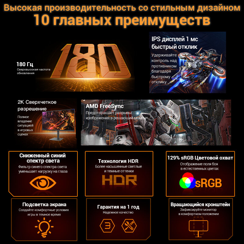 Sanc G52 23.8" 2K+180 Гц Fast IPS Игровой монитор с частотой 1 мс